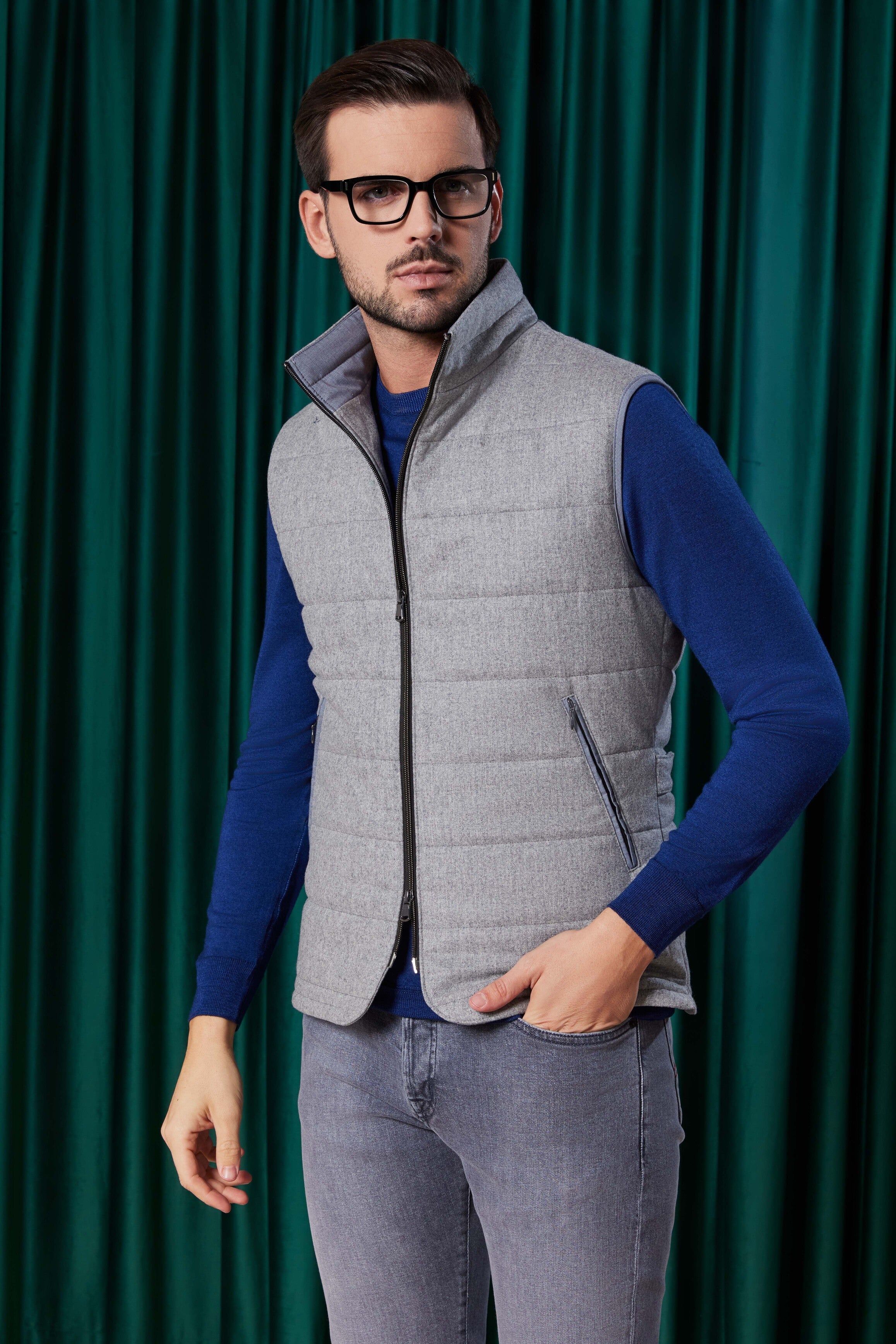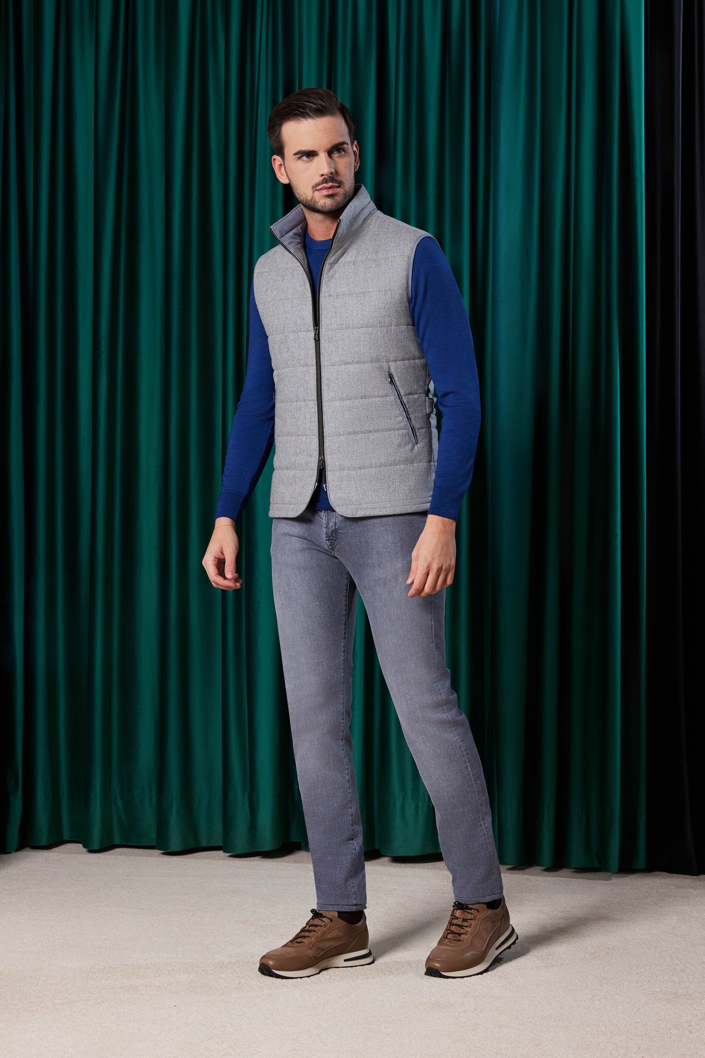 Acest body warmer matlasat reprezintă echilibrul perfect între funcționalitate și stil, fiind realizat din țesătura inovatoare Vitale Barberis Canonico Earth, Wind & Fire. Acest material premium oferă protecție excelentă împotriva vântului și ploii, păstrând confortul și respirabilitatea pentru un stil de viață activ.