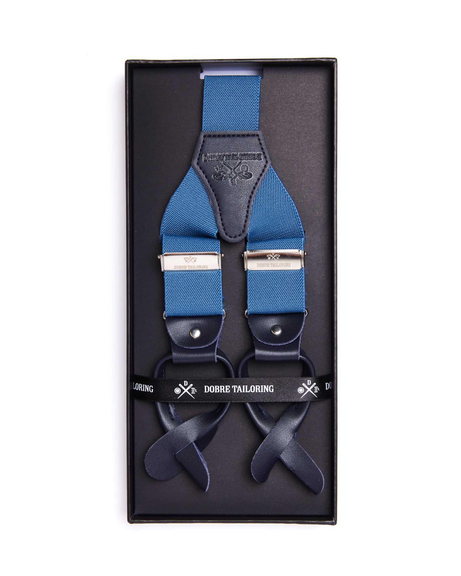 Descoperă eleganța atemporală a bretelelor Dobre Tailoring. Confecționate din piele naturală premium și benzi textile de înaltă calitate, aceste bretele oferă un confort excepțional pe tot parcursul zilei. Clipsurile metalice argintii adaugă un detaliu sofisticat, iar culoarea albastră marin se potrivește perfect atât ținutelor formale, cât și celor casual.