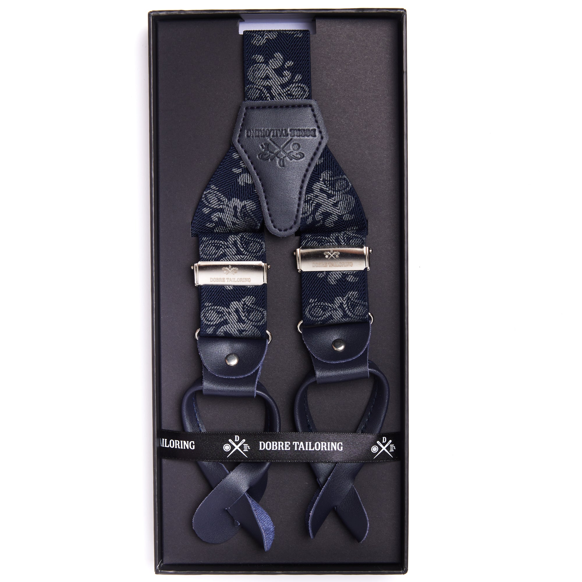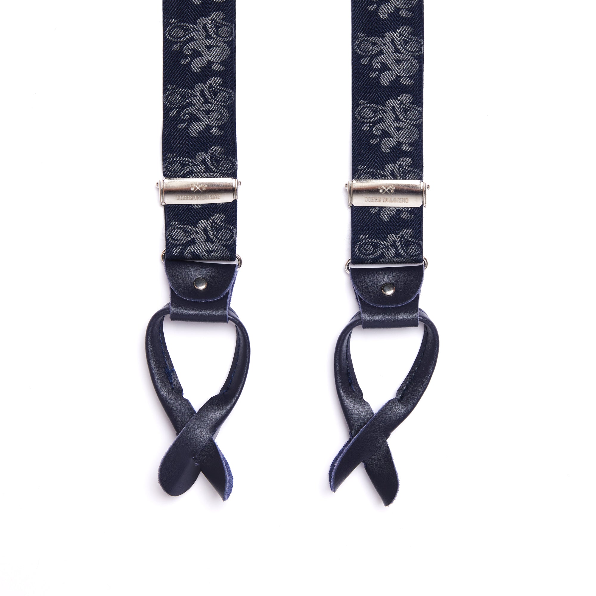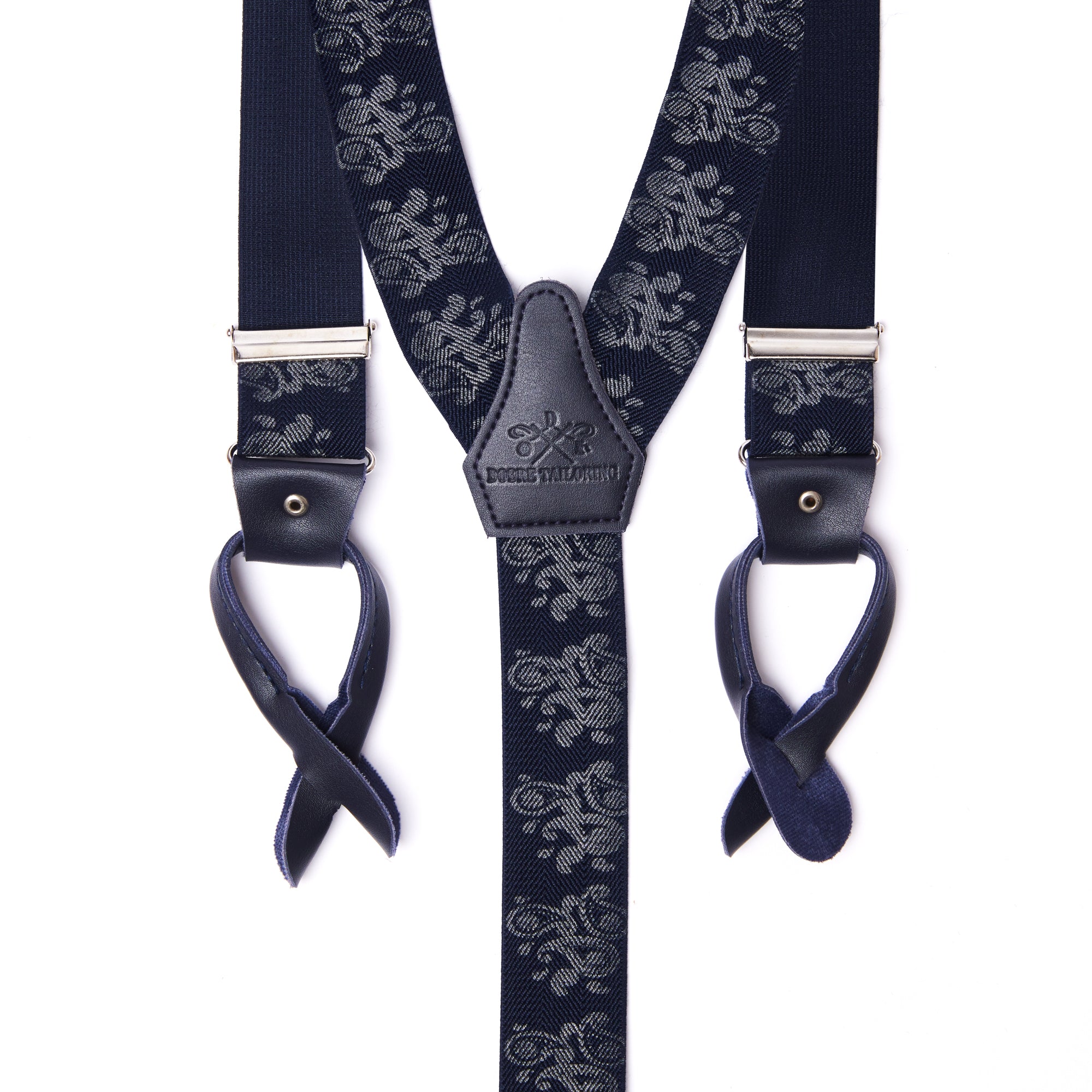 Îmbină stilul clasic cu un design modern, cu aceste bretele elegante. Imprimeul floral delicat, în nuanțe de argintiu, adaugă un strop de originalitate, iar materialele de calitate superioară asigură un confort desăvârșit. Detaliile din piele naturală și clipsurile metalice argintii completează perfect aspectul rafinat al produsului.