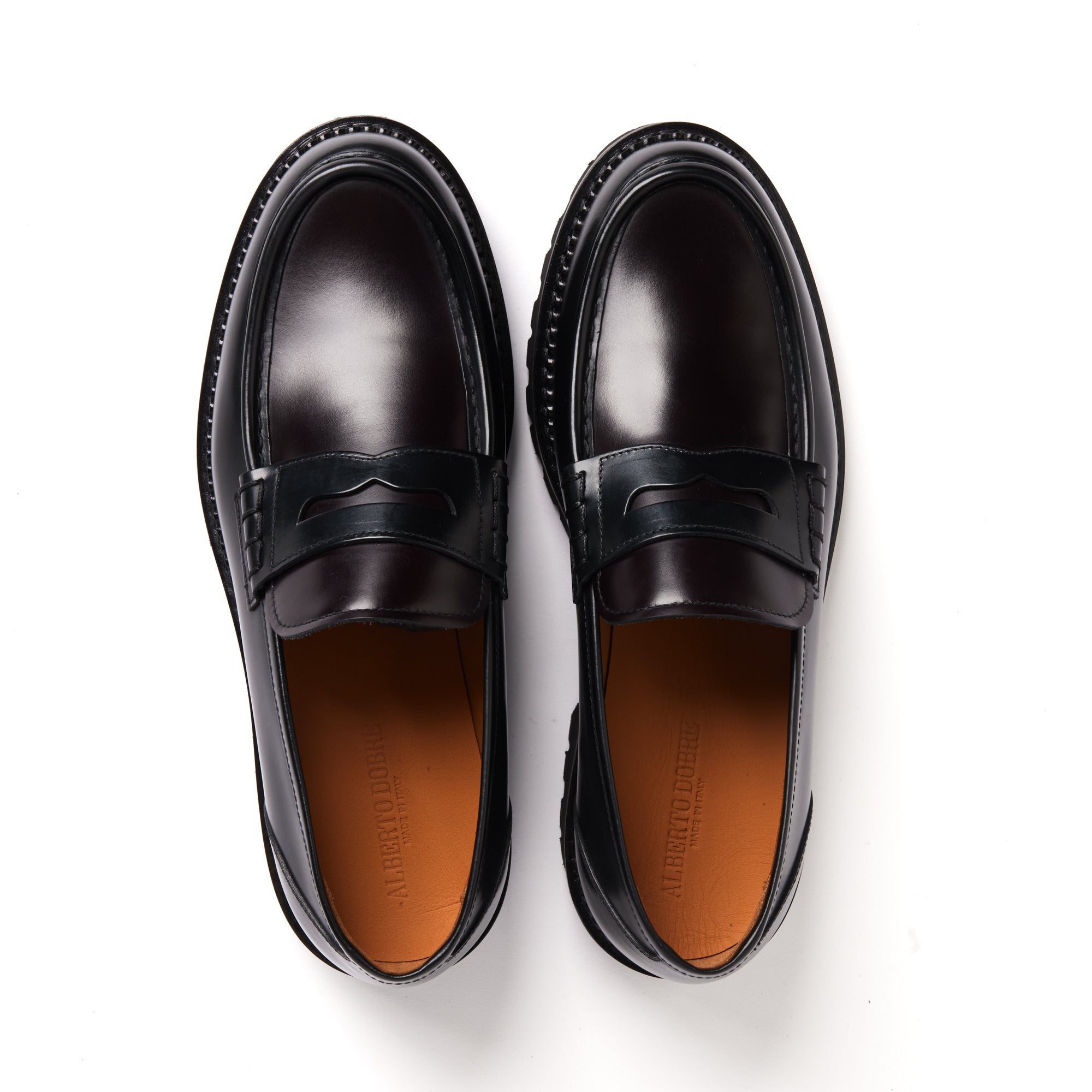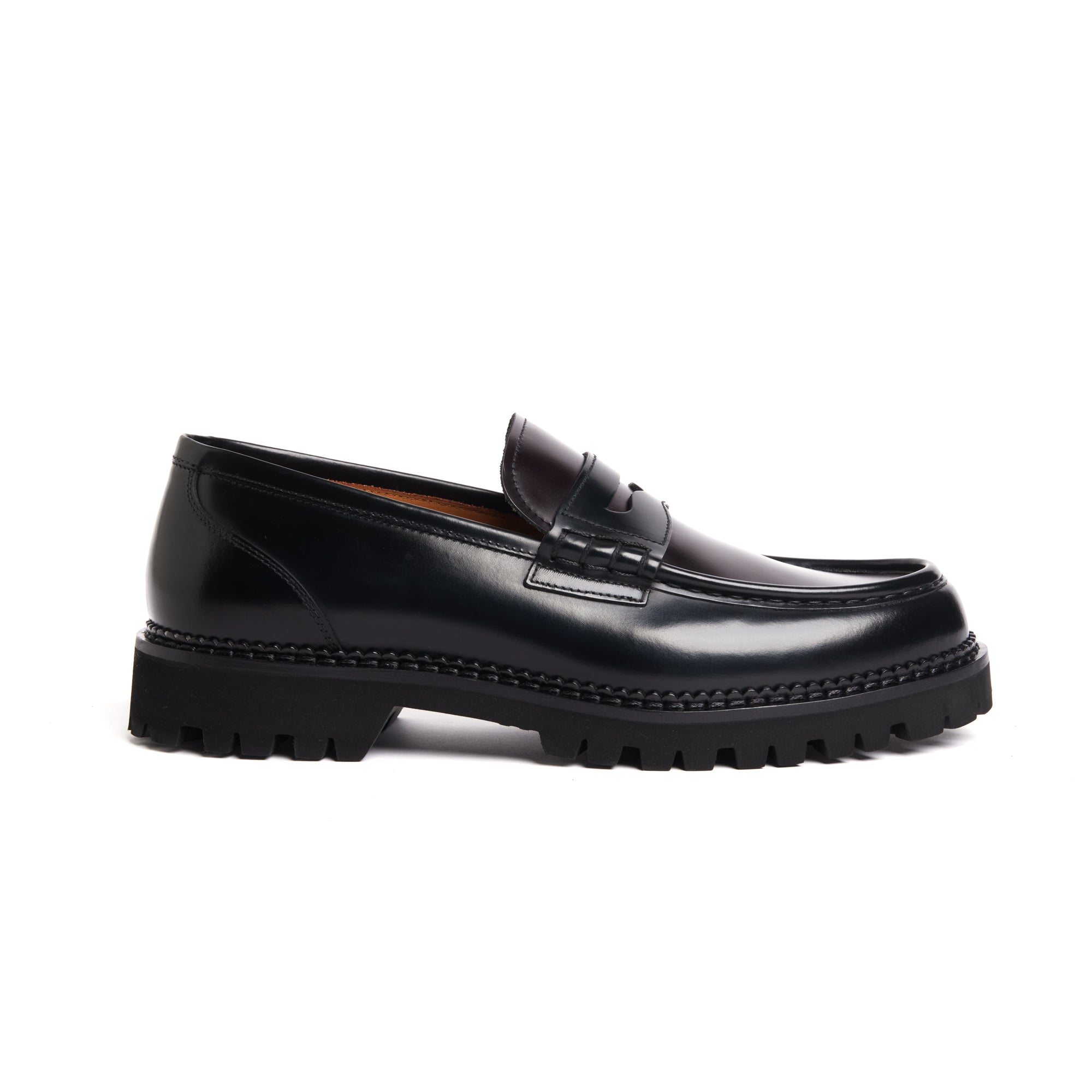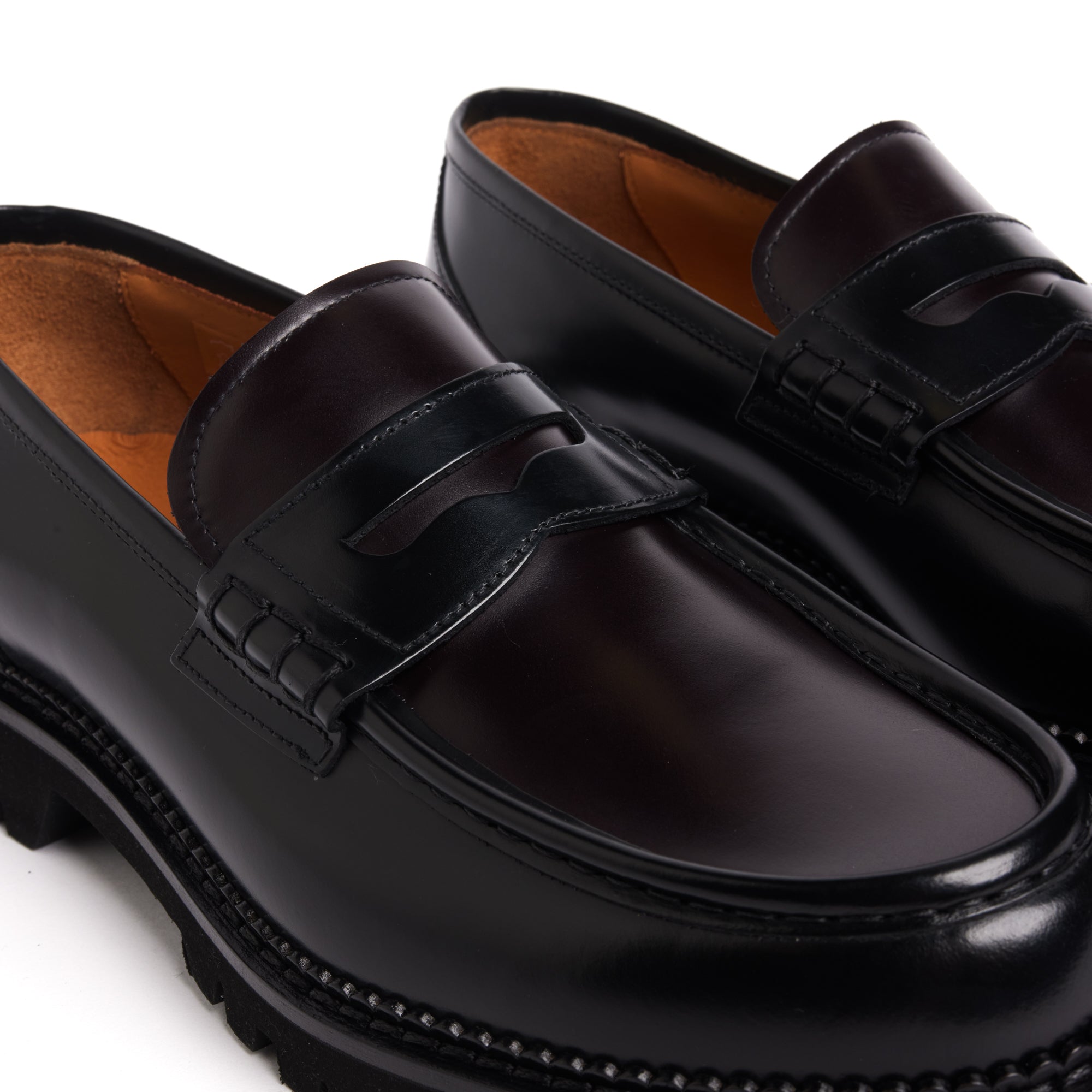 Acești loafers negri, realizați din piele premium cu un finisaj lucios, sunt perfecți pentru bărbatul care apreciază un stil sofisticat, dar contemporan. Talpa chunky, robustă și înaltă, redefinește estetica clasică a loaferilor, adăugând un aer modern și un plus de confort.