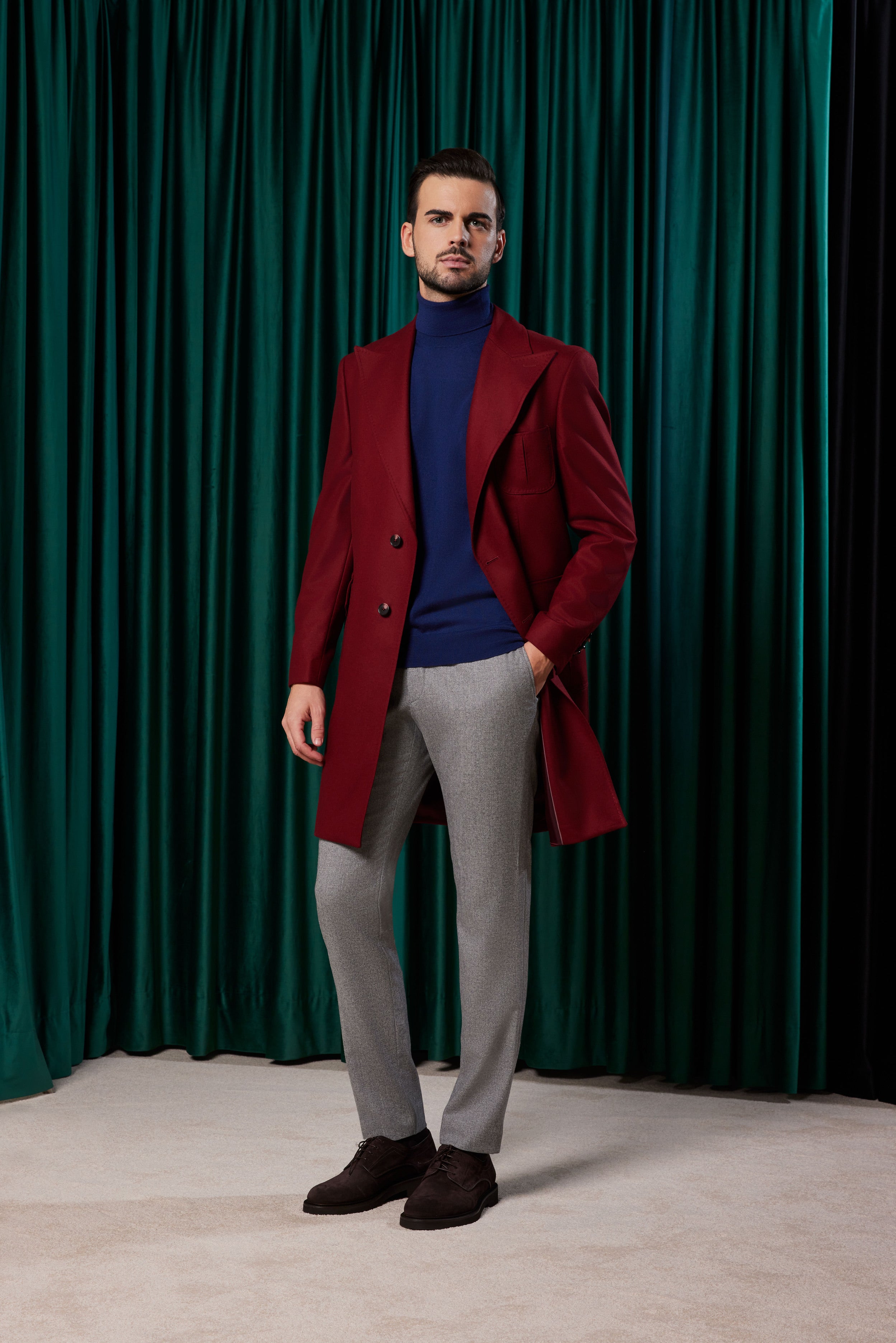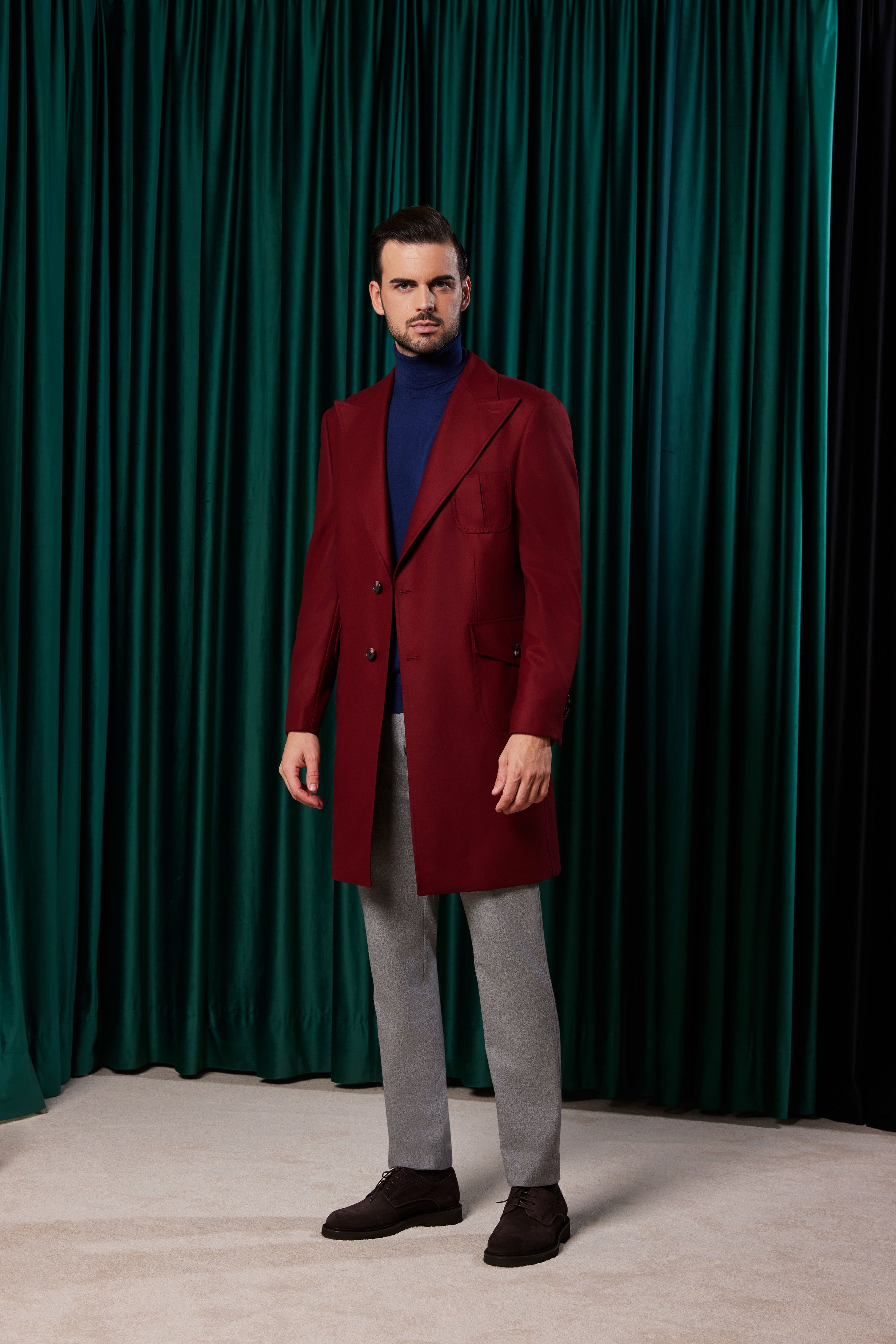 Descoperă stilul și rafinamentul cu acest palton bărbătesc, confecționat din 100% lână Holland & Sherry. Cu un croi lung, rever ascuțit și închidere la doi nasturi, acest palton este definiția eleganței. Detaliile fine, precum buzunarele aplicate și finisajele impecabile, completează perfect look-ul.