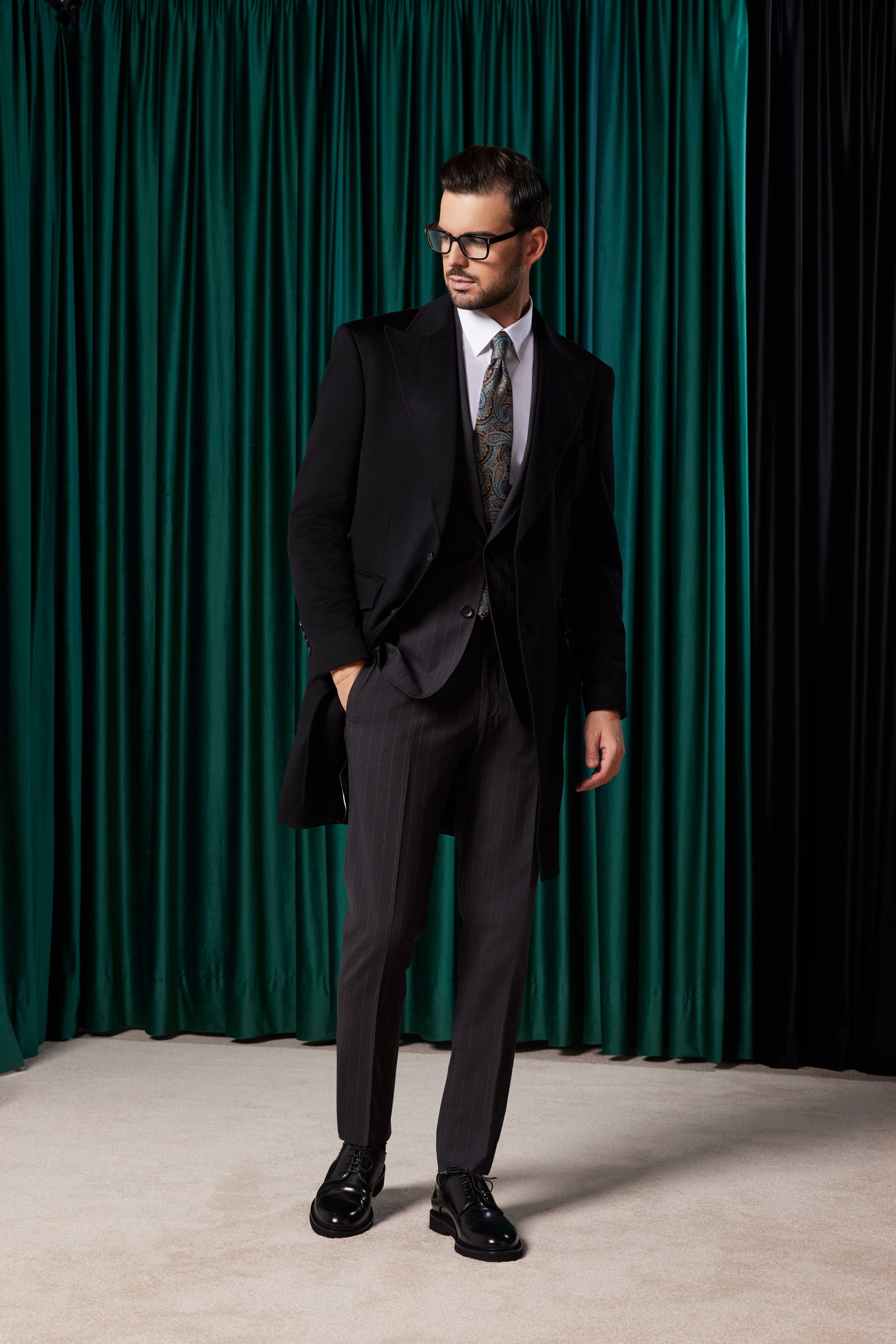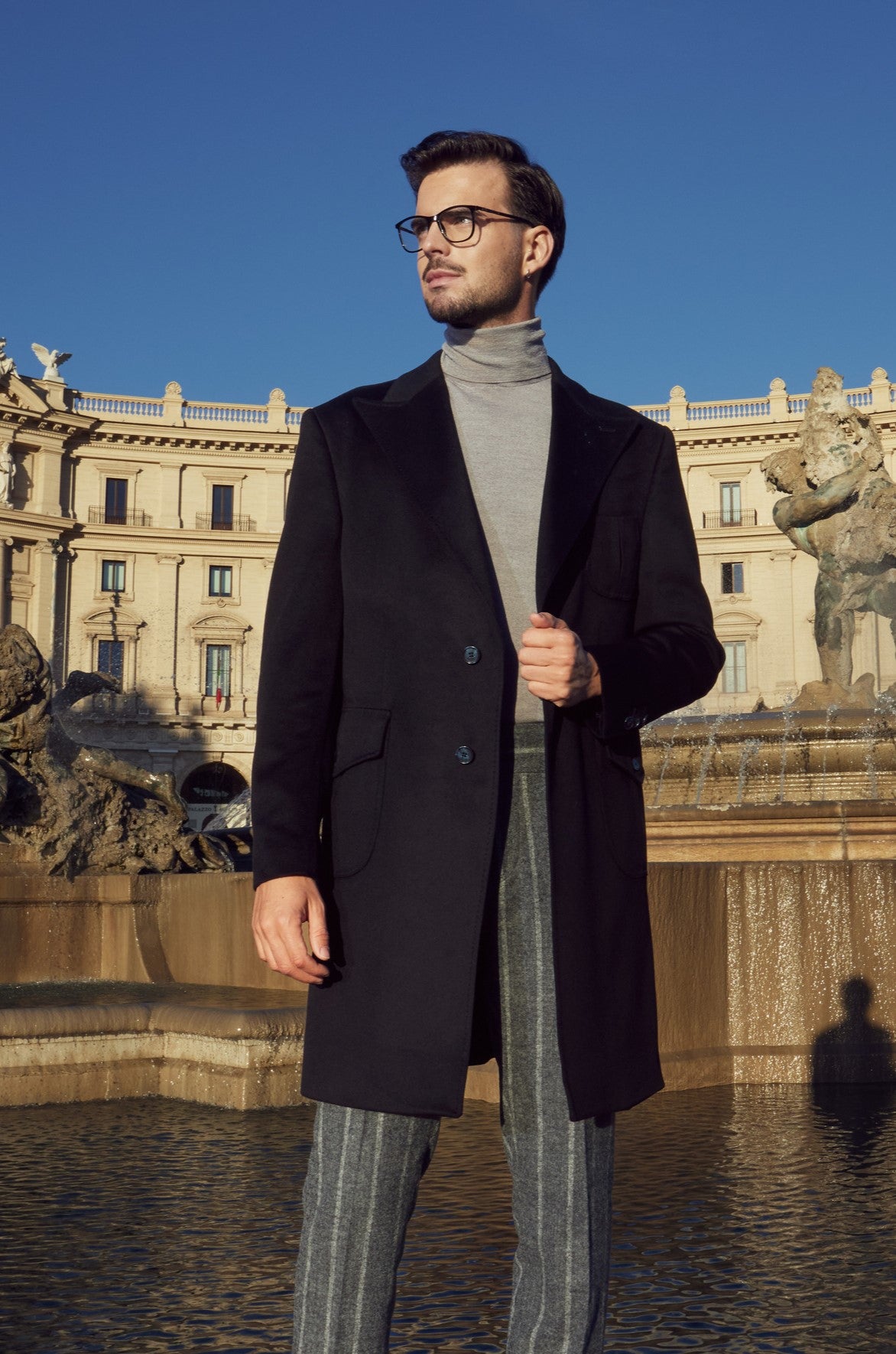 Experimentează confortul cu acest palton bărbătesc negru, realizat din 100% cașmir Loro Piana. Cu un rever ascuțit elegant, închidere la doi nasturi și buzunare aplicate, acest palton este simbolul rafinamentului. Buzunarul la piept cu tăietură adaugă un detaliu subtil, perfect pentru cei care apreciază o estetică discretă și sofisticată. Creat pentru bărbatul modern, acest palton asigură confort și căldură în zilele reci, păstrând în același timp un look impecabil.