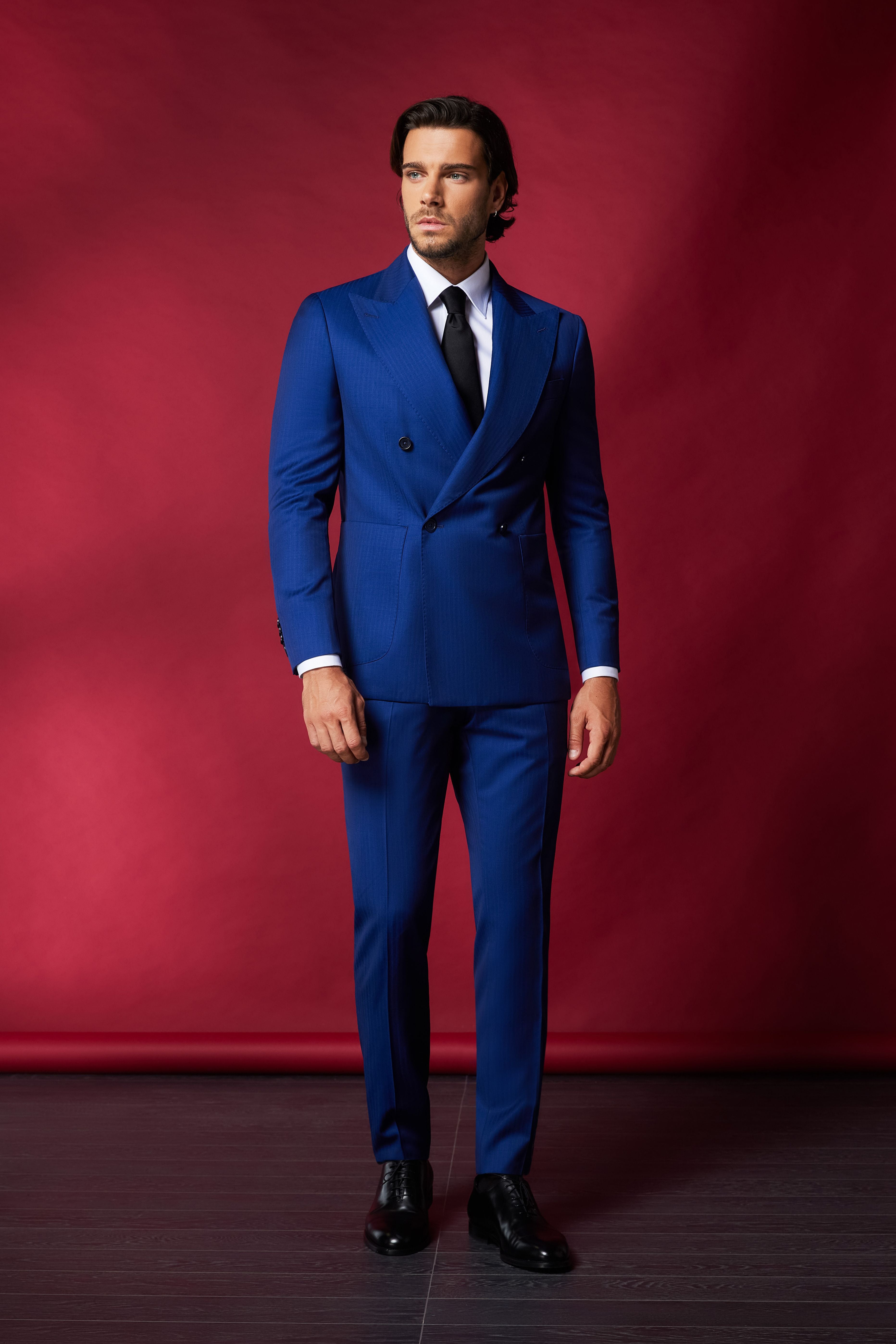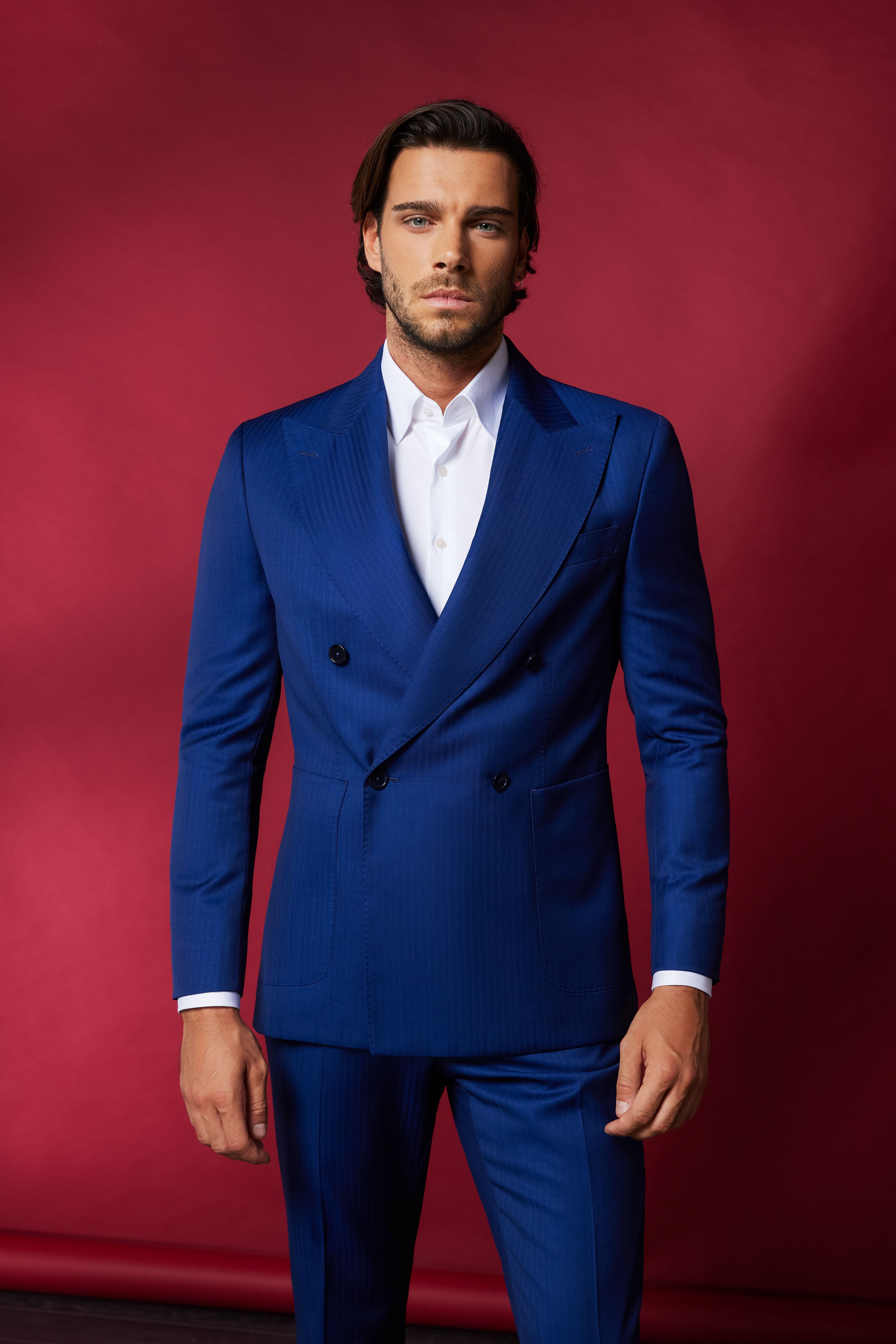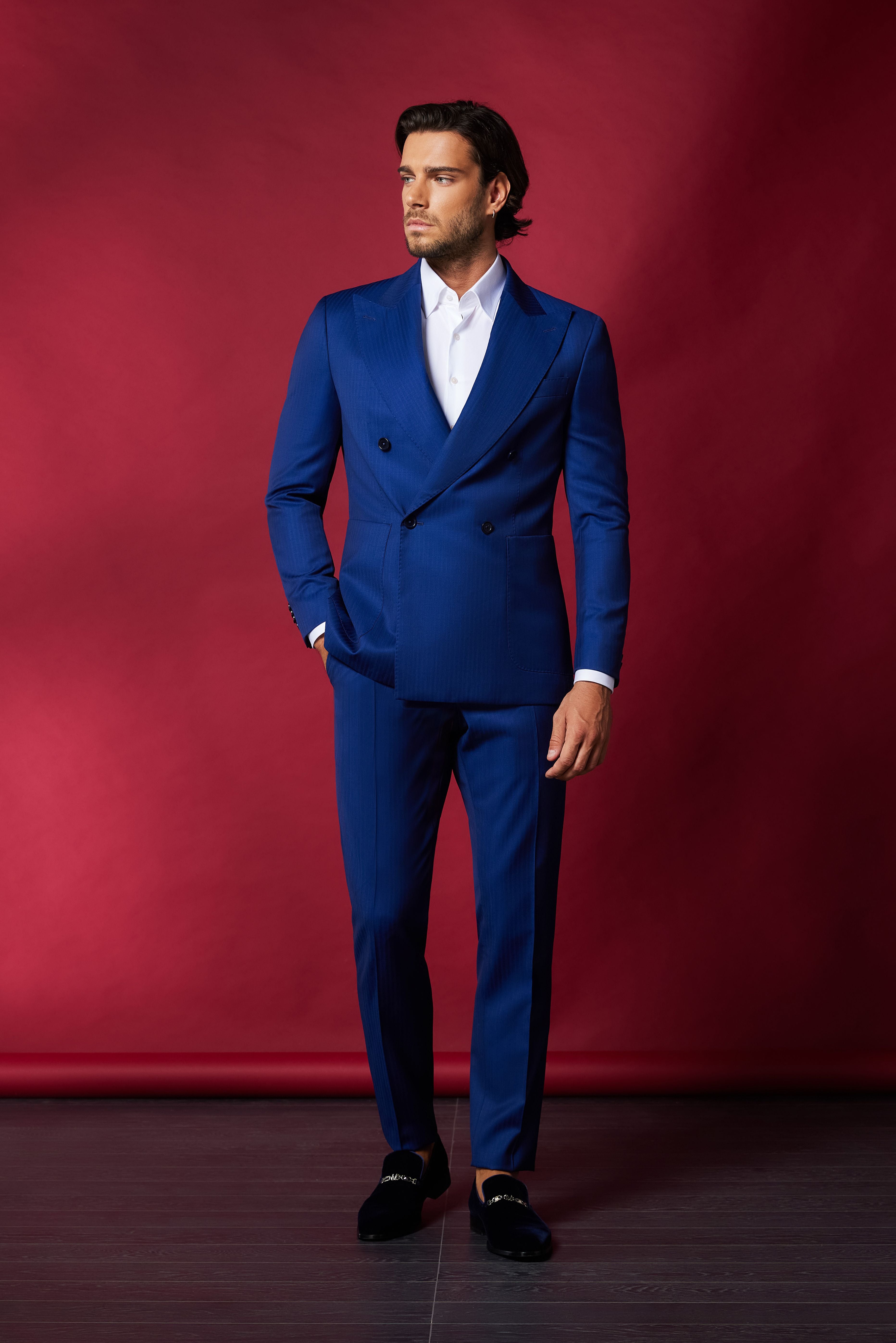 Una dintre culorile preferate ale verii in materie de costume barbatesti este albastrul. Costumele double-breasted sunt potrivite pentru evenimente mai oficiale, iar acest costum poate fi purtat la o nunta, dar si la o intalnire de afaceri.