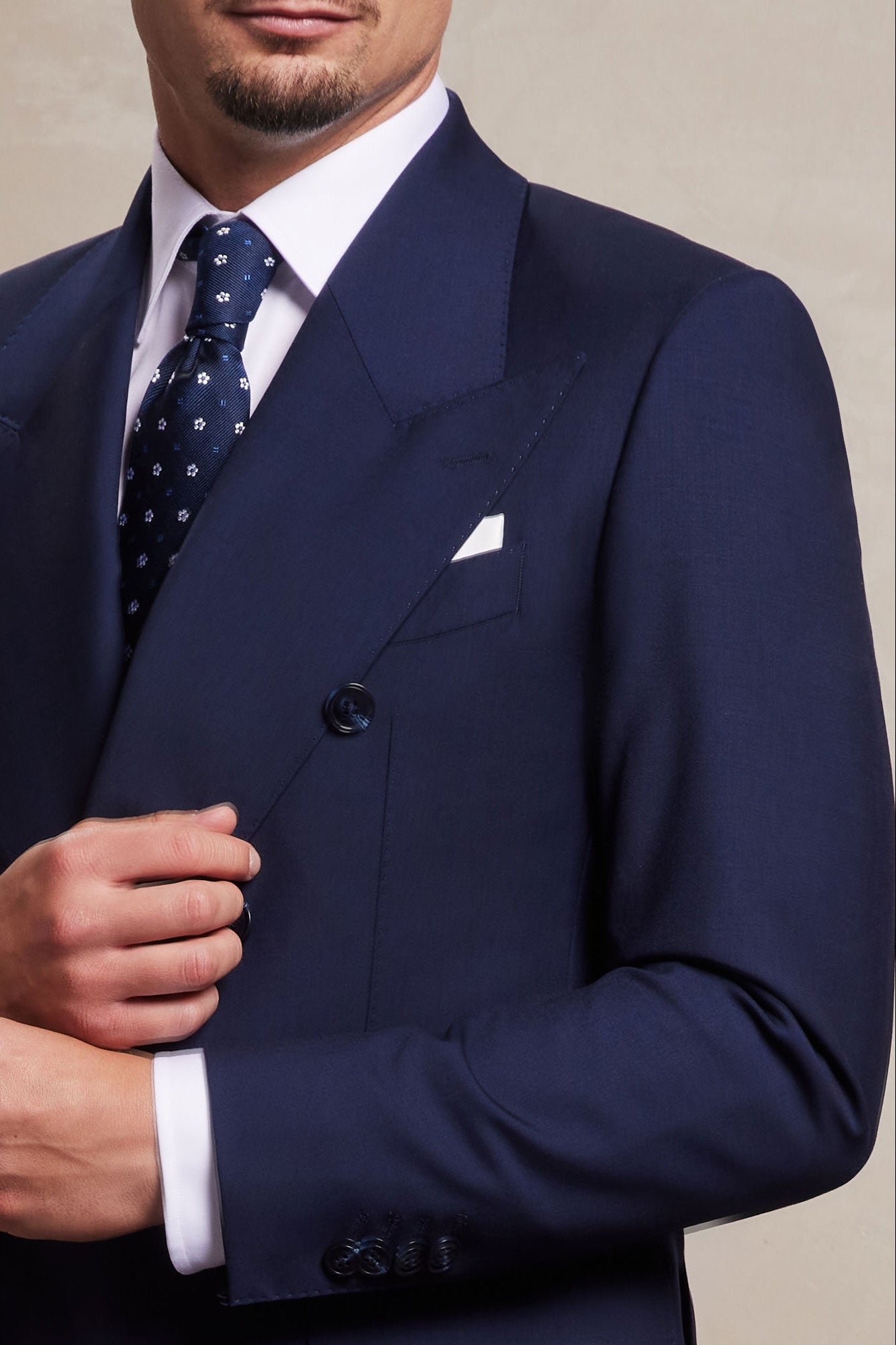 Realizat din stofa Tropical de la Ermenegildo Zegna, acest costum este confecționat din 100% lână Superfine Australiană, una dintre cele mai prețioase fibre din lume. Cu o greutate redusă de doar 220/230 gr, materialul oferă o respirabilitate de neegalat și un confort termic superior, fiind perfect pentru a fi purtat cu lejeritate pe tot parcursul anului. Textura sa fină și căderea fluidă subliniază o siluetă impecabilă, reflectând calitatea inconfundabilă a casei Zegna. Nuanța profundă de bleumarin este versatilă și plină de autoritate, emanând o eleganță sobră și încrezătoare, potrivită pentru cele mai înalte standarde.