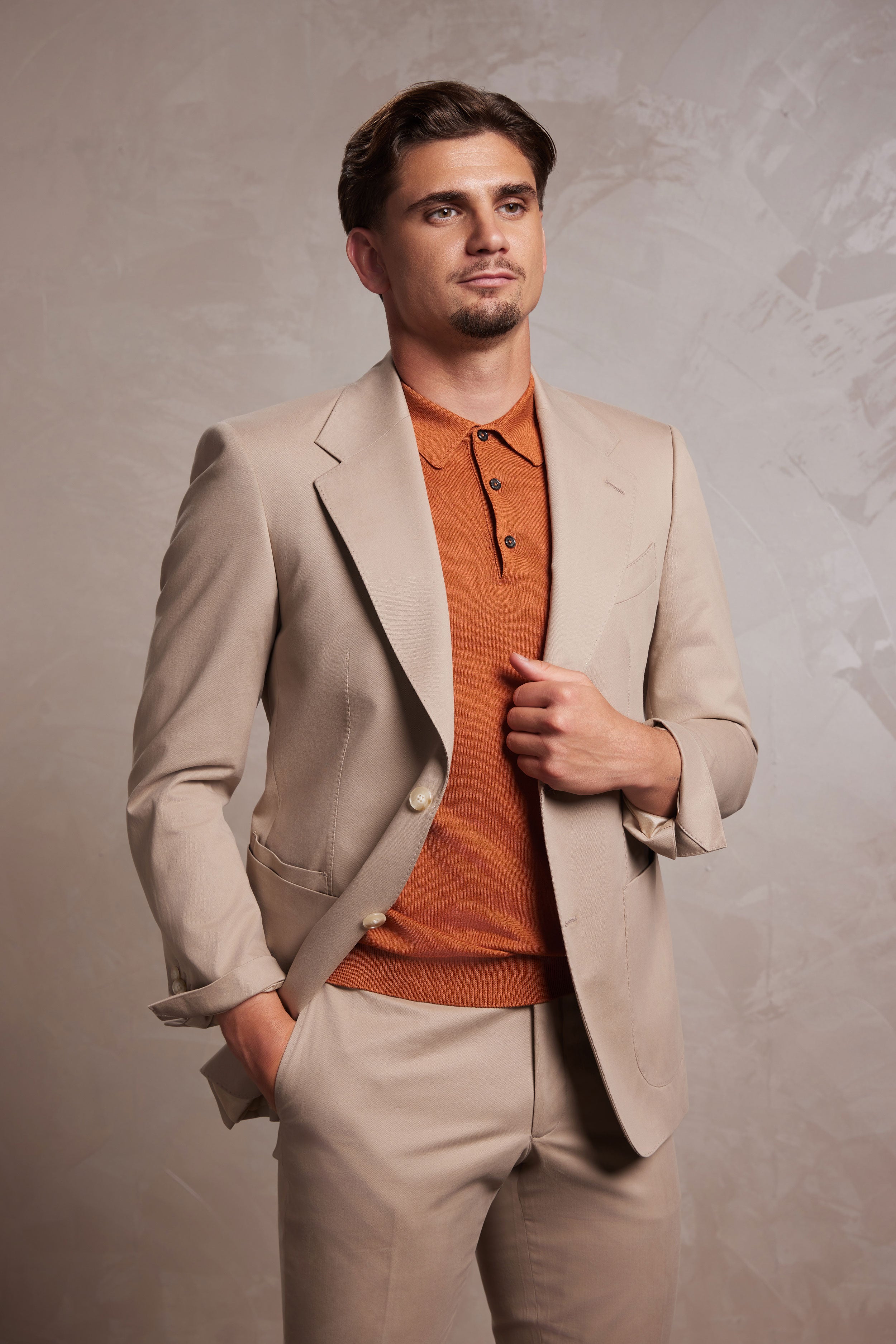 Descoperiți un rafinament clasic și un confort excepțional cu acest costum remarcabil! Confecționat dintr-o stofă Ermenegildo Zegna din colecția Amazing, realizat din lână 100% Superfine Australiană, acest costum oferă o textură incredibil de fină, fluiditate impecabilă și rezistență naturală la șifonare. Nuanța caldă de bej emană o eleganță atemporală, perfectă pentru orice ocazie specială.