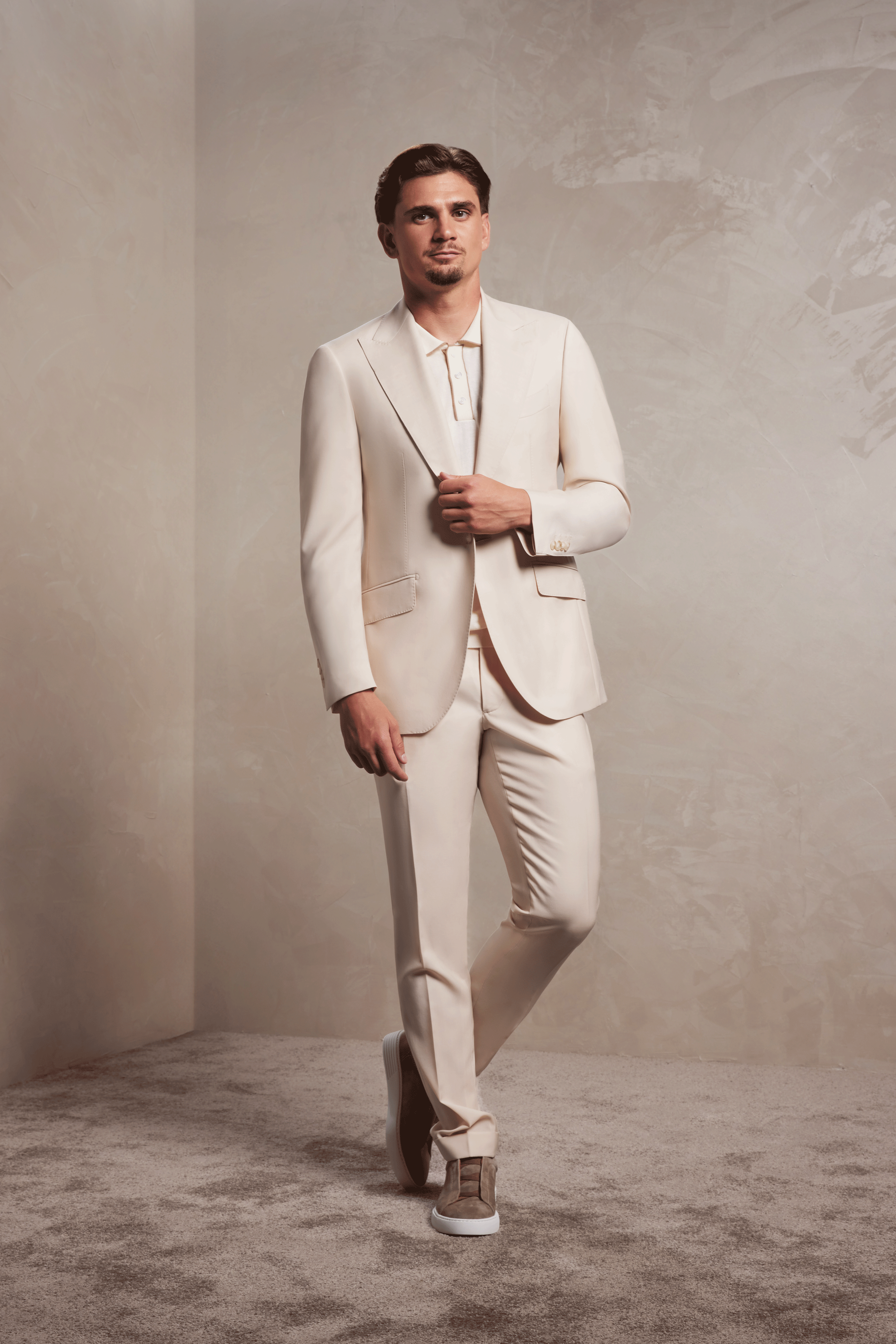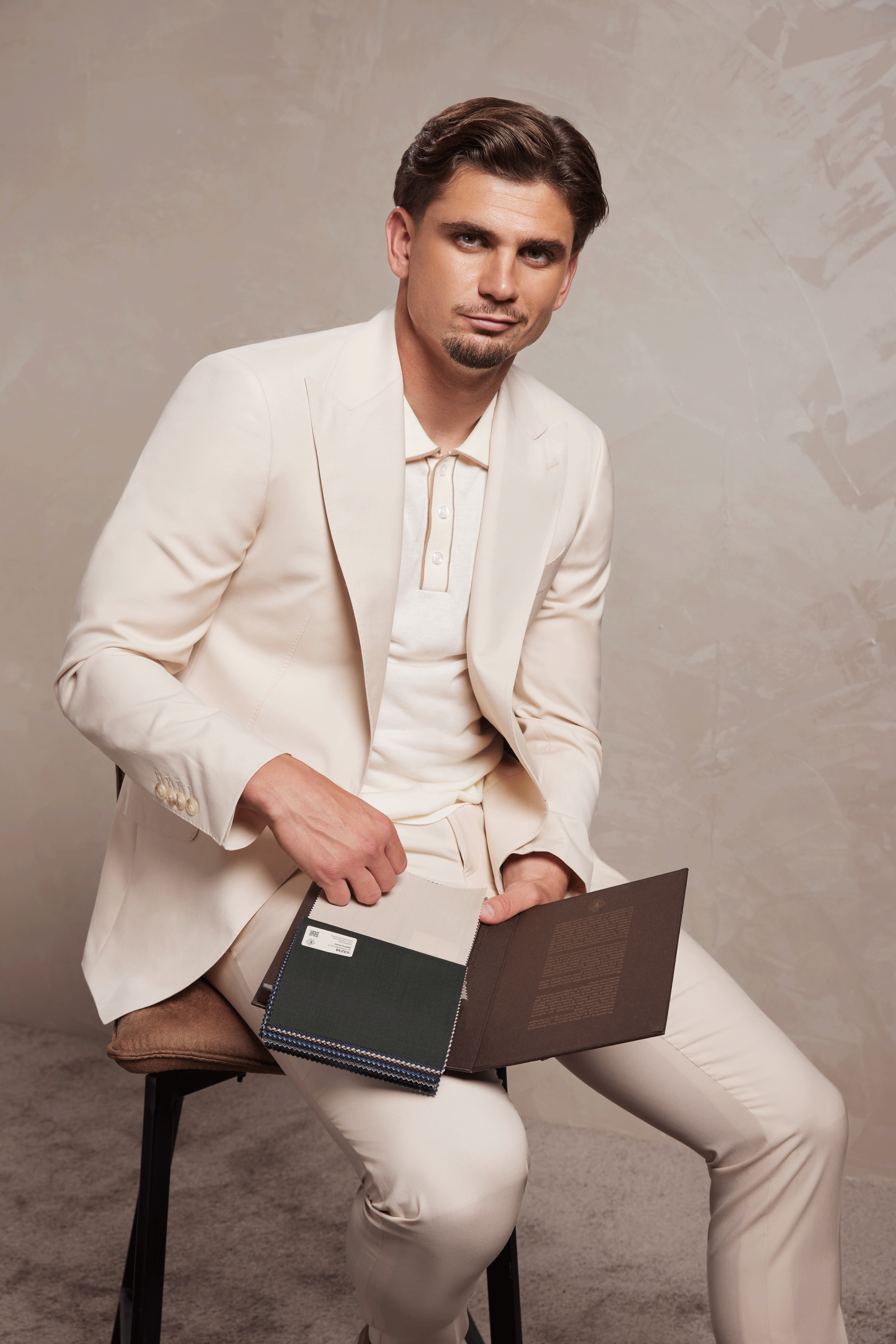 Pregătiți-vă să impresionați! Descoperiți rafinamentul clasic și un confort excepțional cu acest costum remarcabil! Confecționat dintr-o stofă Ermenegildo Zegna din colecția Amazing, realizat din lână 100% Superfine Australiană, acest costum oferă o textură incredibil de fină, fluiditate impecabilă și rezistență naturală la șifonare. Nuanța de bej deschis emană o eleganță atemporală, perfectă pentru orice ocazie specială.