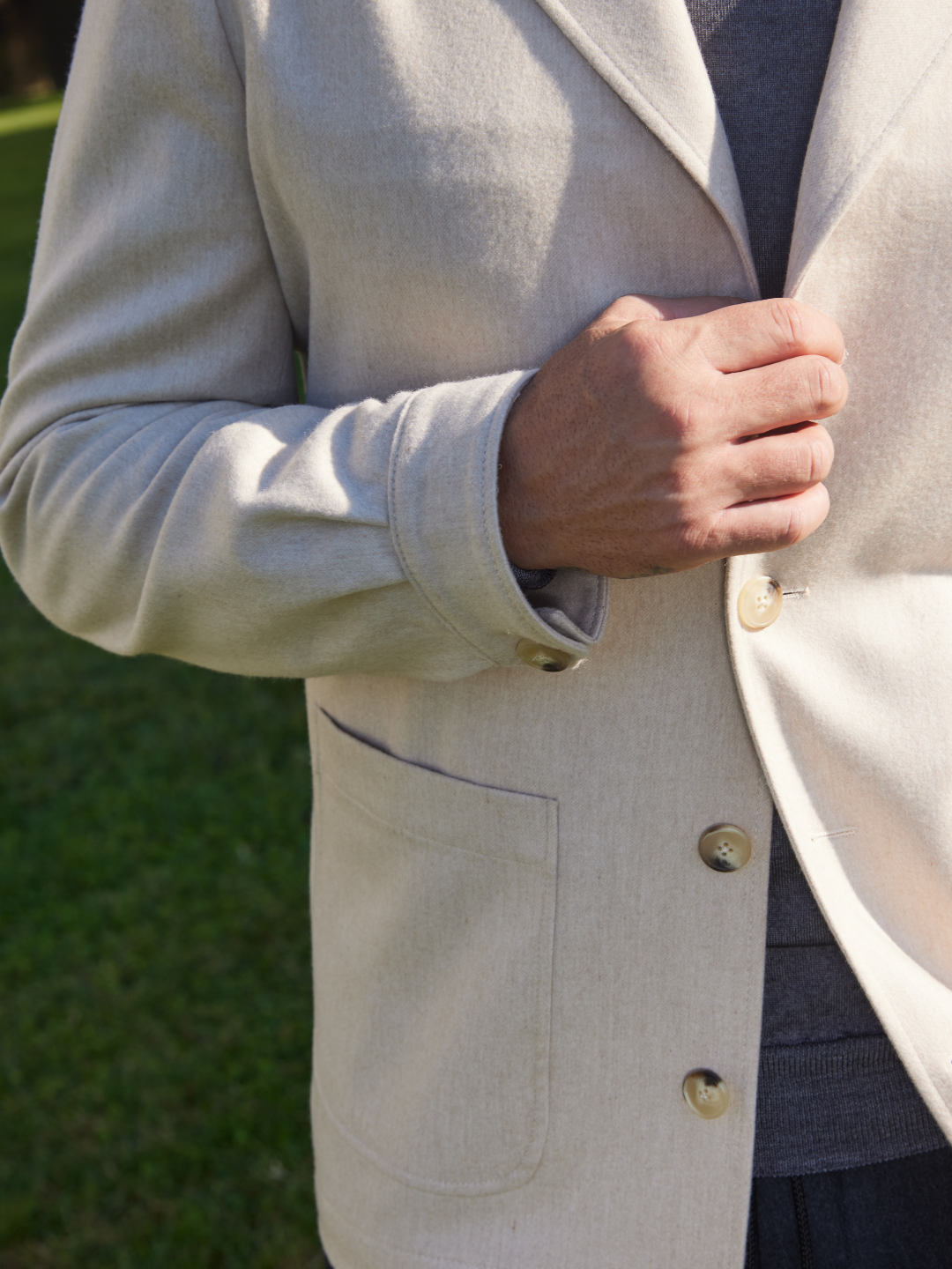 Confecționată dintr-un amestec premium ZEGNA de cașmir, mătase și lână, piesa prezintă un rever clasic, suplu și buzunare aplicate funcționale, fiind ideală pentru o croială lejeră.