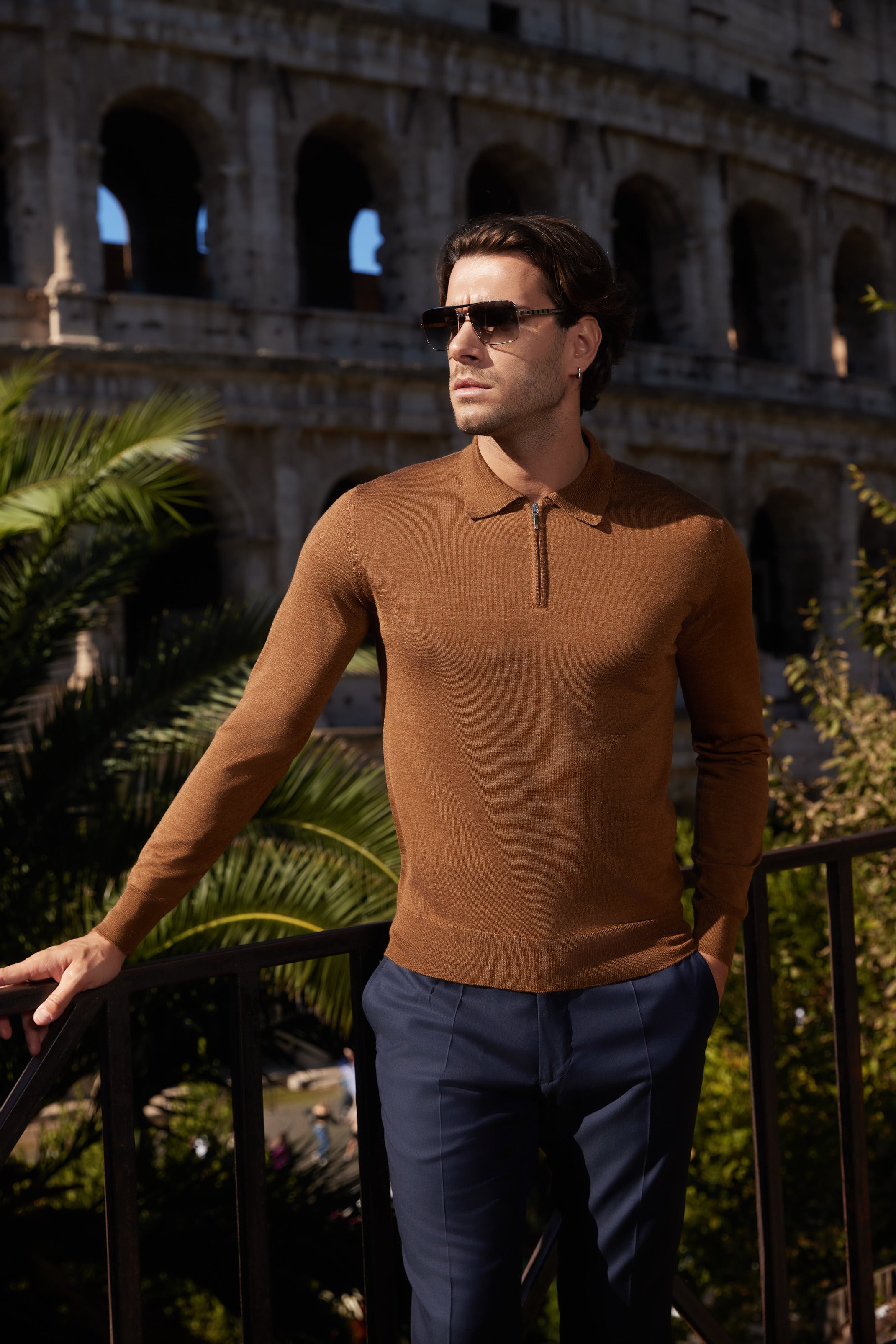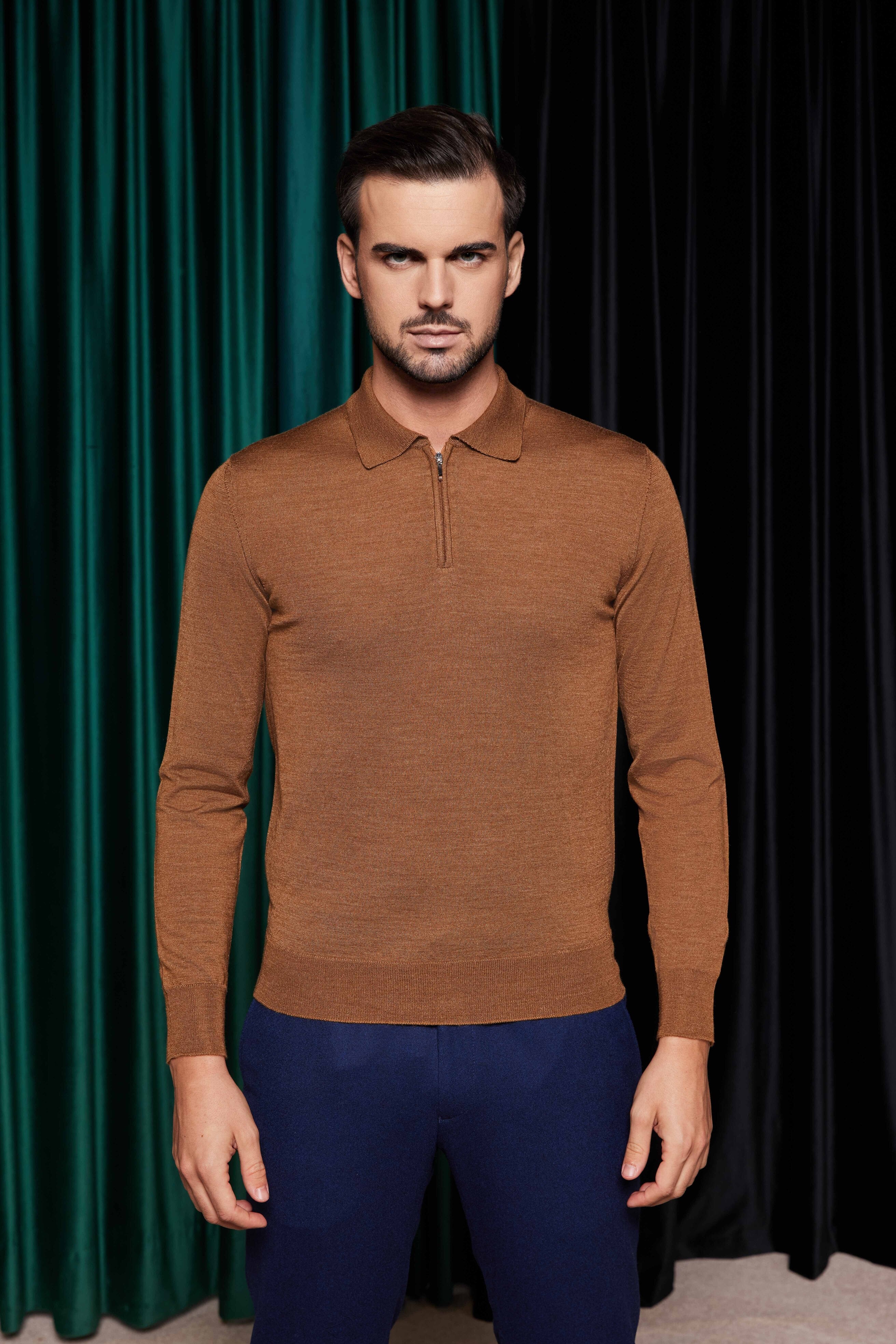 Nuanța de caramel conferă versatilitate, făcându-l ușor de asortat atât cu ținute business casual, cât și cu outfituri elegante de weekend. Croiala slim fit accentuează orice siluetă, fără a compromite confortul. Un pulover premium pentru bărbatul modern, care apreciază îmbinarea dintre stil și funcționalitate.