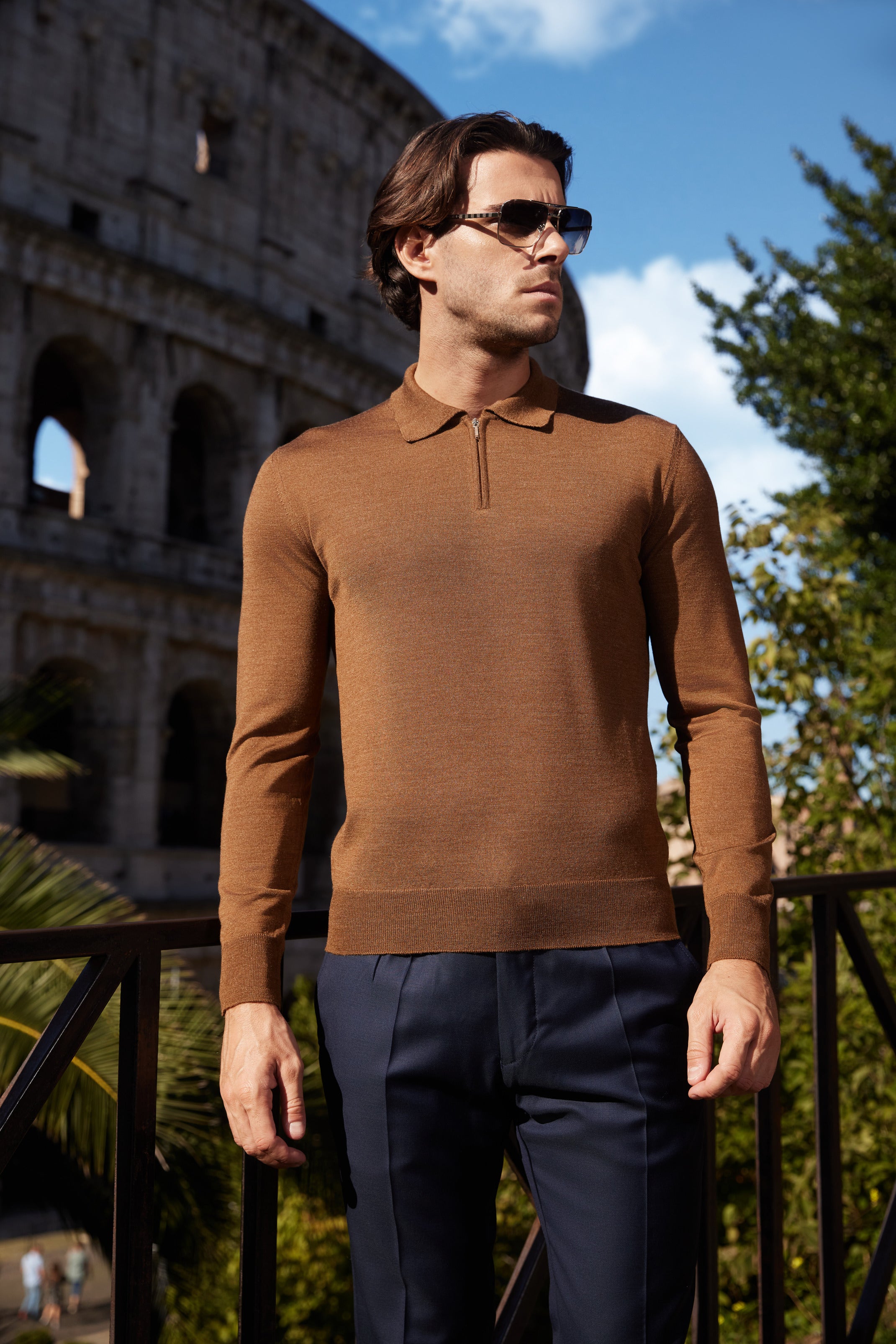 Puloverul Serrano este o piesă rafinată, confecționată din 70% lână merino și 30% mătase. Acest pulover impresionează prin textura moale și confortul oferit, fiind o alegere ideală pentru sezonul de toamnă-iarnă. Designul său minimalist este completat de un guler polo cu fermoar discret, adăugând o notă contemporană acestui articol clasic.