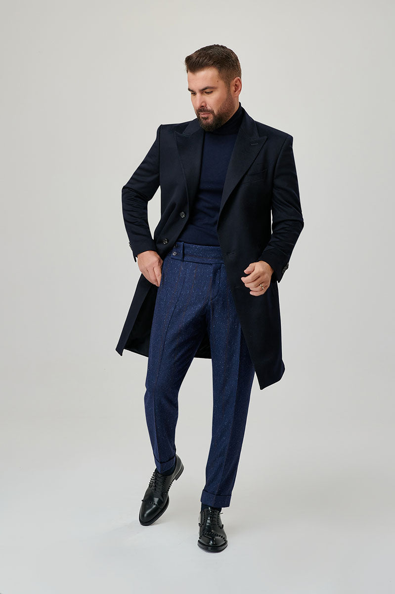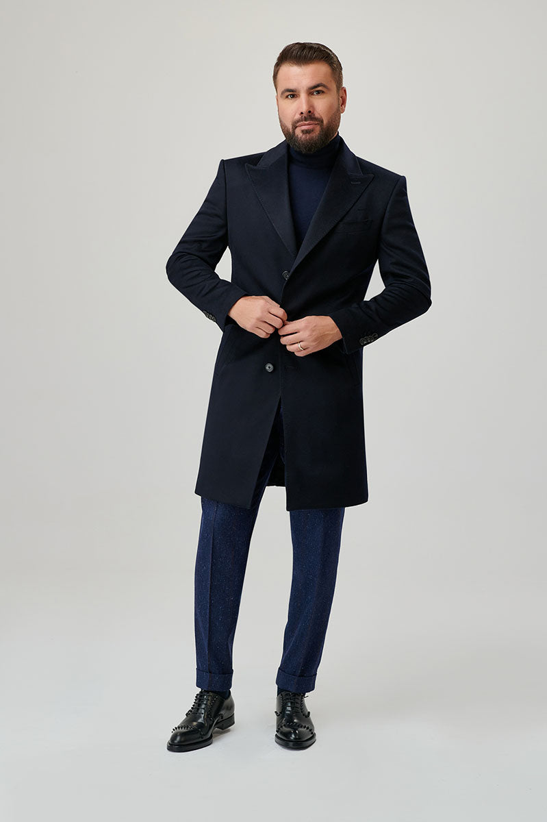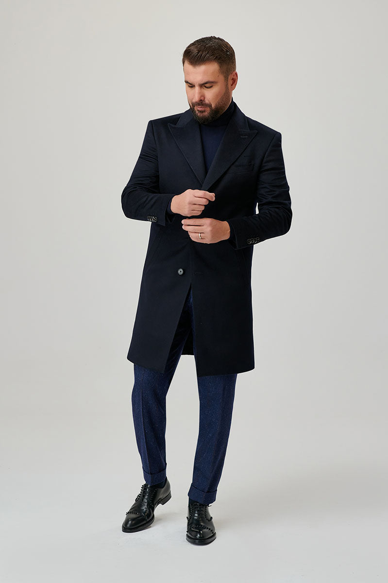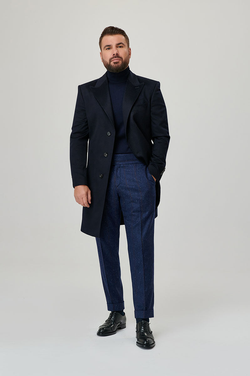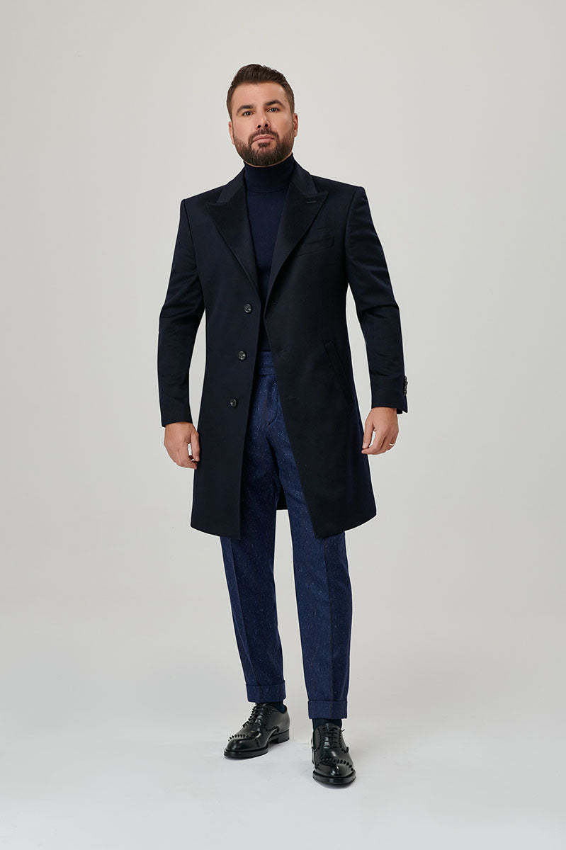 Paltonul bleumarin Giancarlo este o creație clasică, dar profund masculină. Fabricat din țesătura de excepție, Loro Piana, 100% cașmir.
