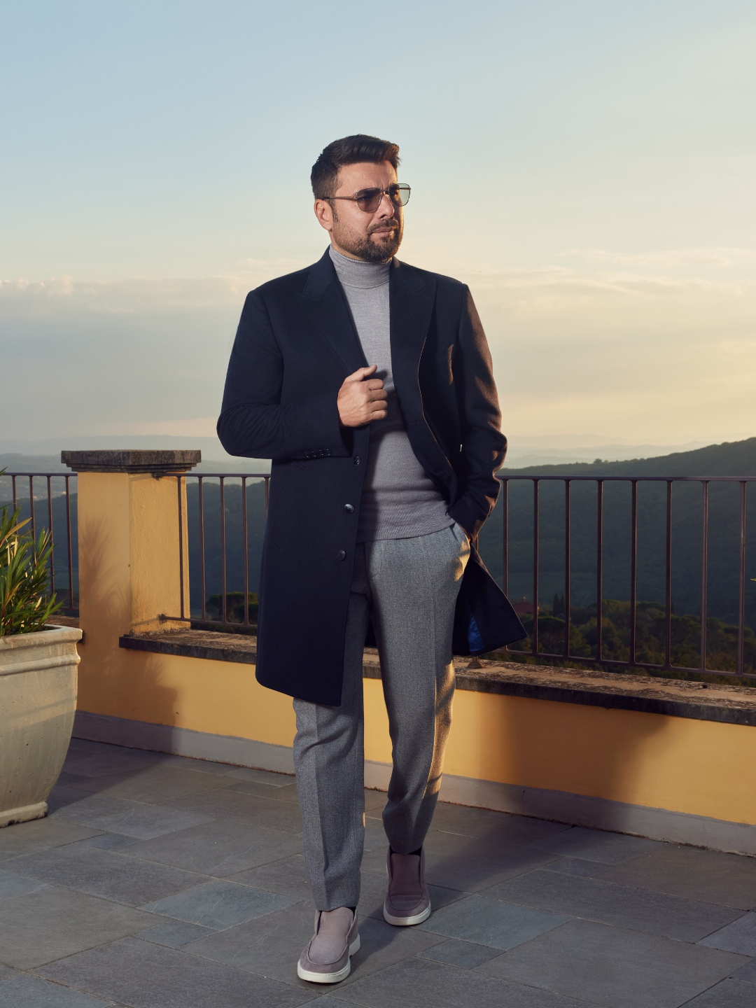 Interlinia din cașmir, cusută integral, oferă paltonului o formă impecabilă și o longevitate de neegalat, mulându-se perfect pe corpul dumneavoastră la fiecare purtare.