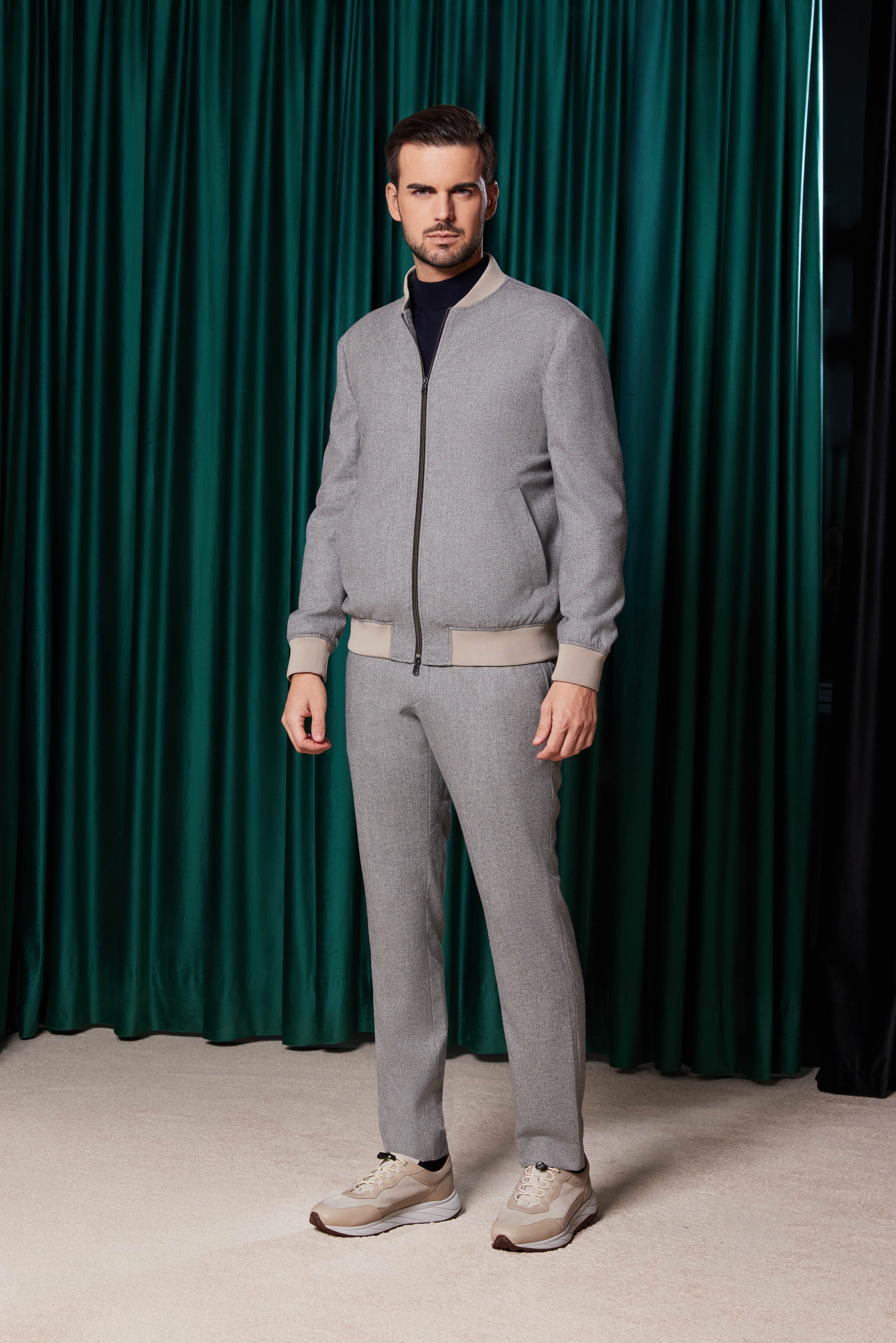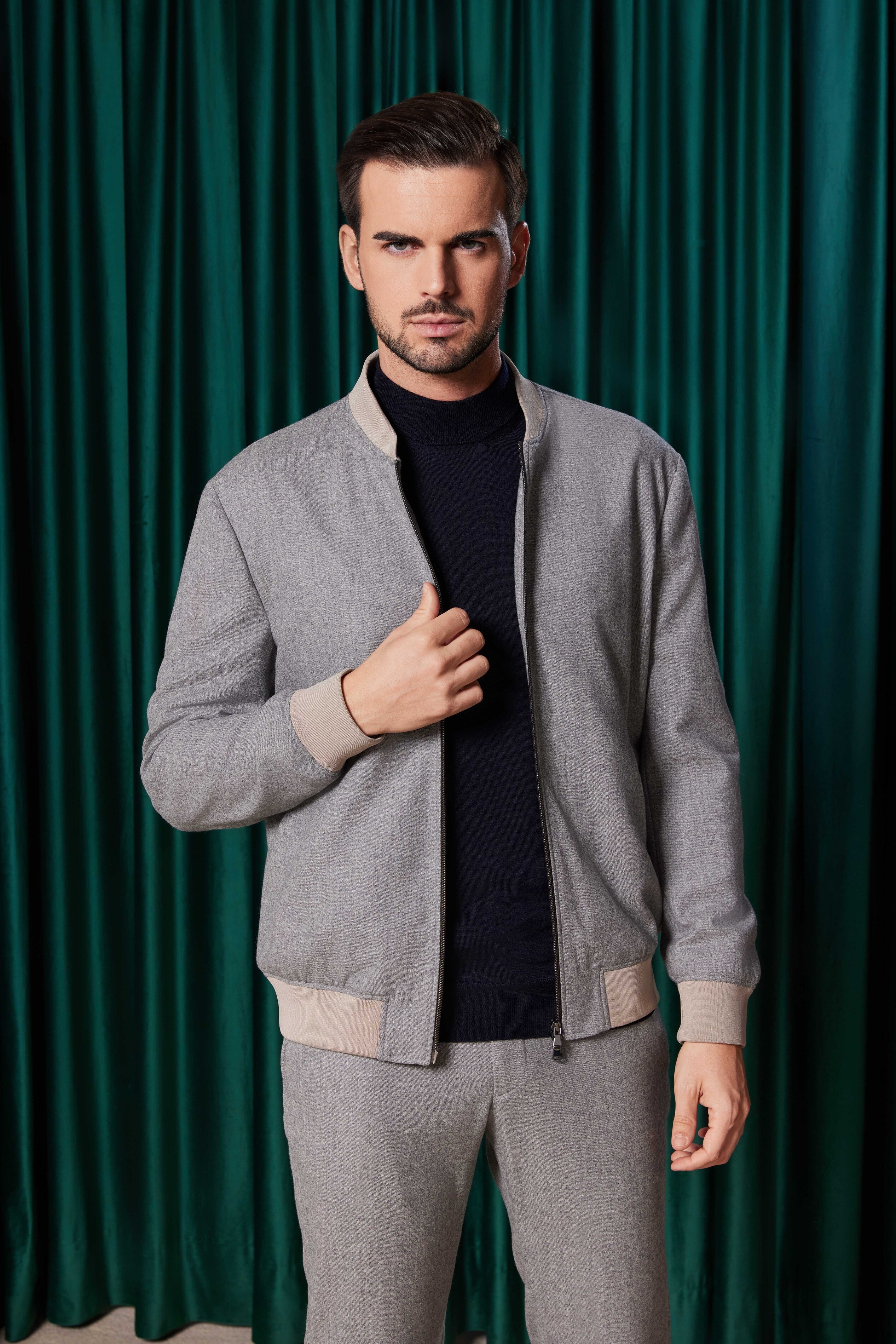 Realizată la comandă pentru a se potrivi perfect proporțiilor clientului, această jachetă este ideală pentru bărbații care apreciază confortul premium combinat cu un design sofisticat și modern. Perfectă pentru a adăuga un plus de rafinament unui look lejer, fără a sacrifica confortul.