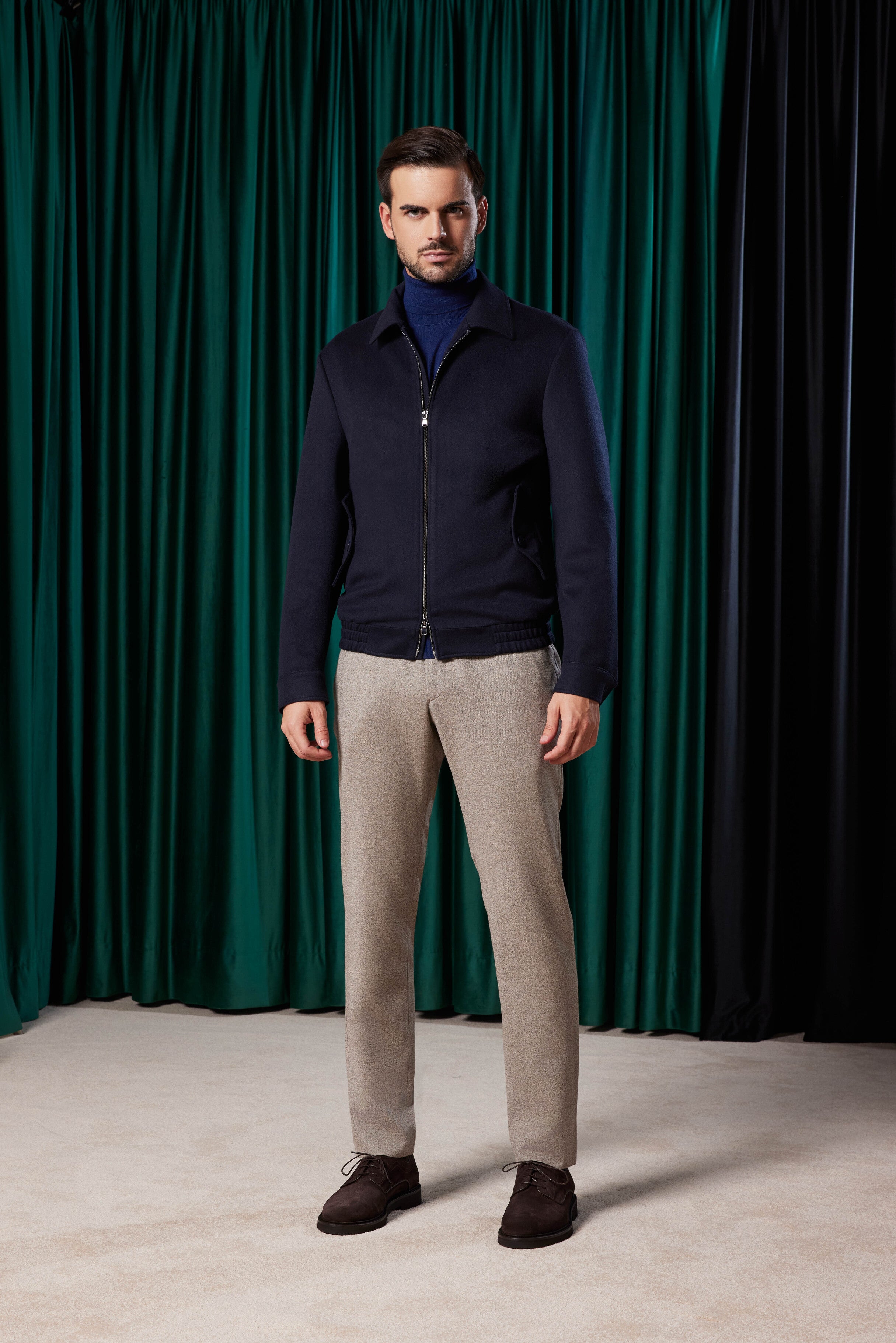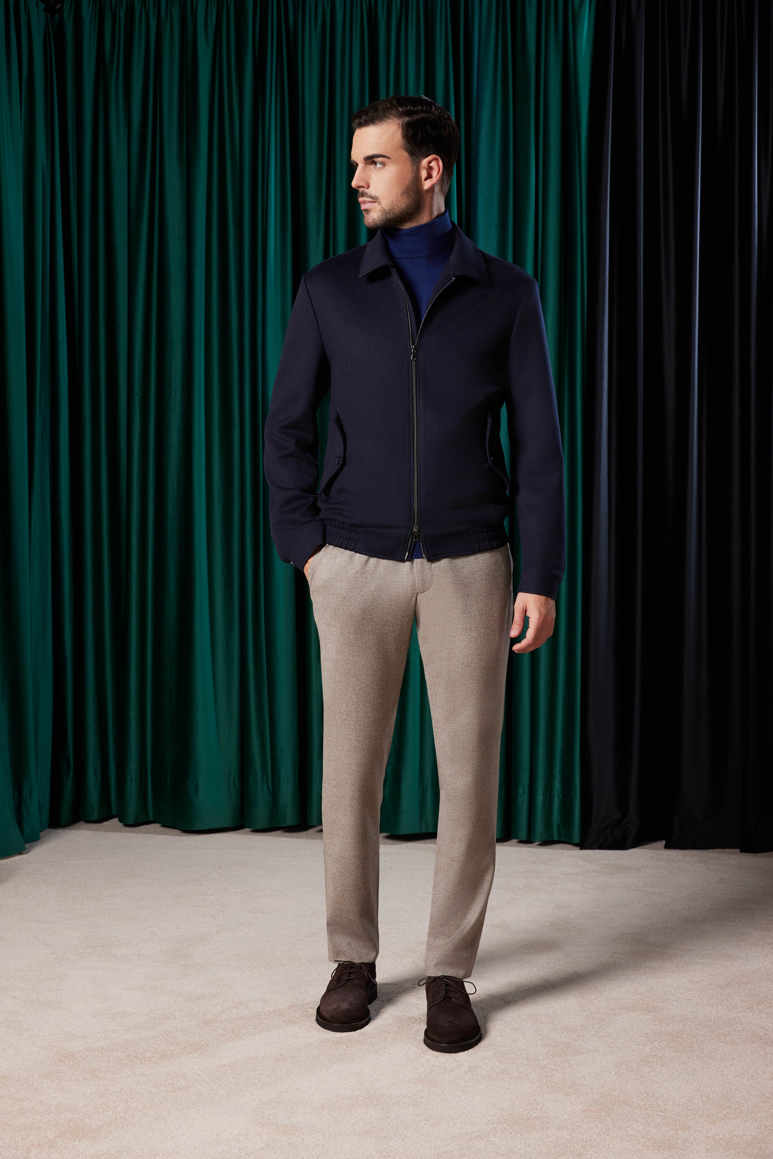 Această jacket sofisticată este confecționată din exclusivista țesătură Loro Piana Capolavoro, recunoscută pentru finețea sa excepțională și durabilitate în timp. Materialul oferă un confort superior, fiind atât elegant, cât și practic pentru sezonul rece.
